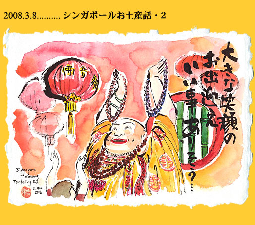 実は先週の絵てがみコラムは木曜日に仕上げて金曜日からシンガポールに行ってきました。仕事で長くお世話になっているプロデューサーのK子氏との二人旅。いくつかの目的や今後の仕事につなげる市場調査も含めてのタイトなスケジュールだったが、そこは旅行好きの二人のこと、こだわりのテーマを掲げて楽しんできた。