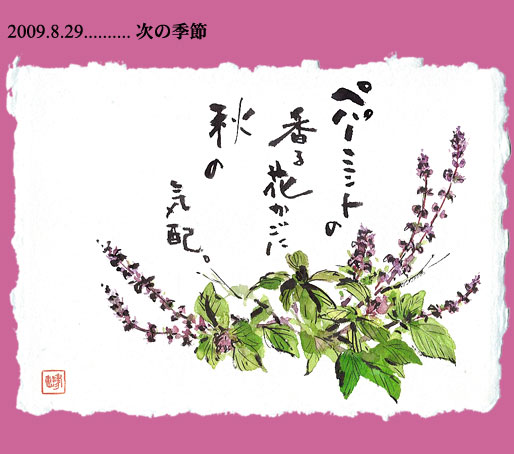 すごく久しぶりに私のHPを見た友だちが私の近況を知って私を慰める為に、ため息が出る程素敵な花かごを贈ってくれた。彼女こだわりの自由が丘の花屋さんのロマンチックなアレンジで何枚もその花の絵を描きたくなるほど。甘く大人っぽい色合いのシンピジュームや茶色いバラ珍しいセルリアなど。本当に素敵なのだ。そして部屋に広がるほのかな香り。ペパーミントの花やジャスミンの葉もアレンジに使われていた。友だちの思いやりが伝わる贈り物だ。仕事のイラストを描き上げた合い間に今このアレンジメントを描く事を楽しんでいる。