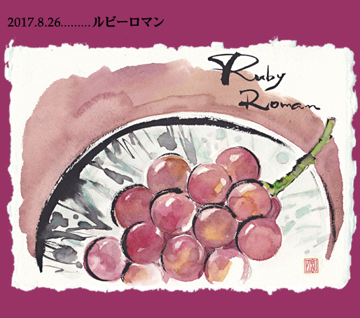 一粒が大きく、巨峰の倍くらい。それにしてもその一粒は4万円相当だそうで。加賀の老舗旅館が競り落としたそうだ。お味は糖度が高く酸味が控えめらしい…というのも、絵に描いた餅ならぬ「絵に描いただけのルビーロマン」だ。まだ誰からもいただいていない。私の口には入っていないのだ。葡萄の進化もすごく、ピオーネ、シャインマスカットなどが近所のスーパーに並ぶようになって久しいが、このルビーロマンがお手軽価格になるのはいつの事やら。