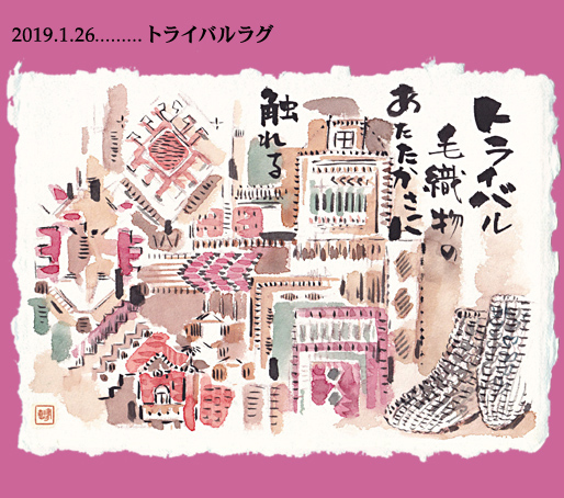 今週は遊び疲れついでに?展覧会のはしごを。私の周りには織りや染め、民芸や手づくりが大好きな人が多い。わたしももちろん大好きだが、「旅と色」をいつも制作のテーマにすることが多いのは、心に現地の人たちの手づくりと自然の調和を感じ取って、掬い取って絵に表現したいと考えているような気がするのだ。自然だけではダメなのである。それを人間はどう解釈して取り入れてるのかな〜と興味があるのだ。
