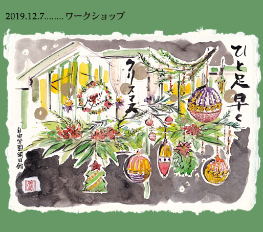 銀座伊東屋での個展が終わって、次のイベントは12月6日のワークショップだった。目白の自由学園明日館での初めてのワークショップ。仲間と夏の終わりからずっと温めてきた、クリスマスオーナメントをちょっと「和」の感覚で描くという企画。