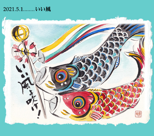 珍しくこいのぼりなど描いてみた。全然縁が無いので良く知らないんだよね、こいのぼり…。季節限定なので、見かけると写真を撮って鱗の感じなど今頃勉強。いい風が吹くと本当にかっこよく青い空に泳いでいるんですね〜。